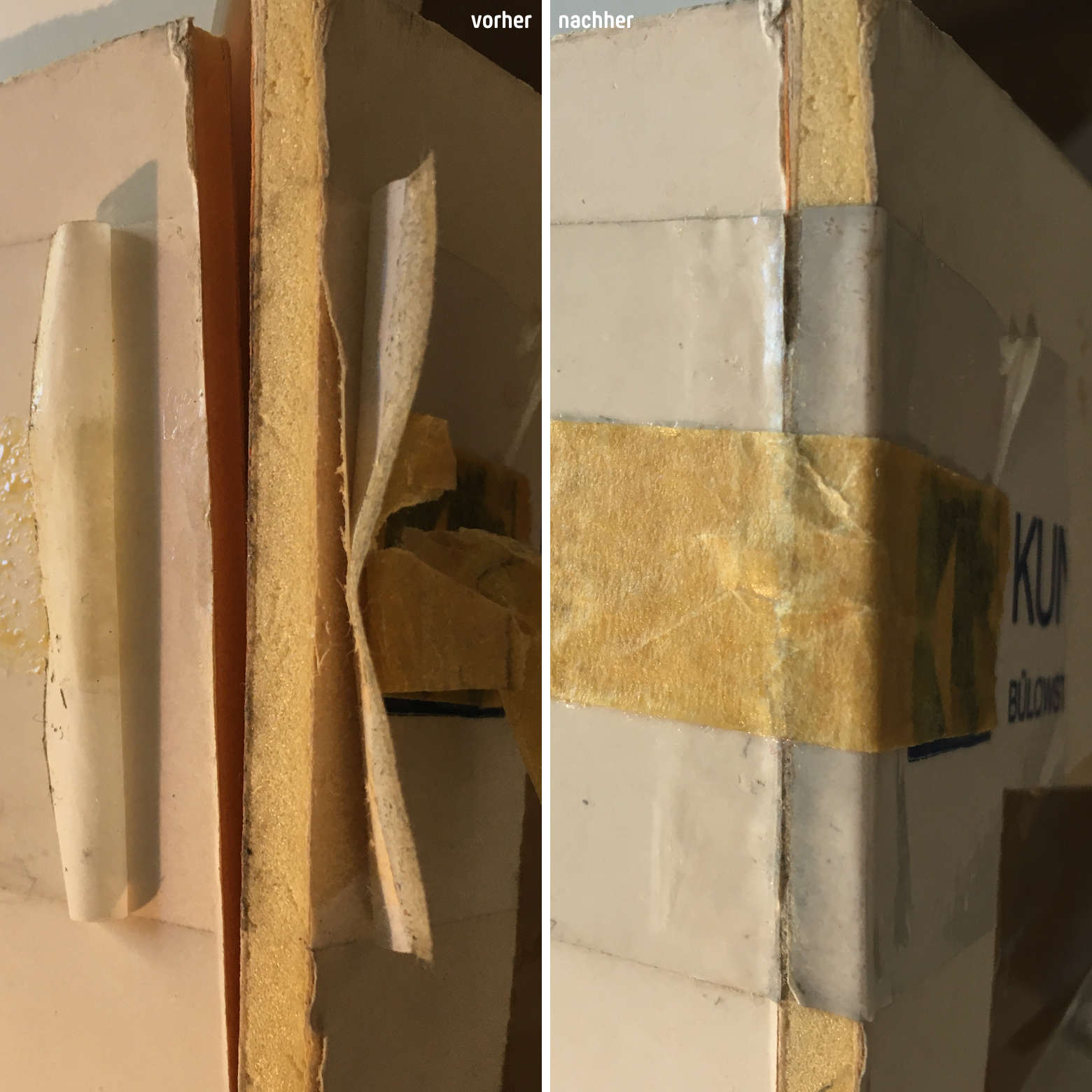 Auch die Bearbeitung von besonderen Objekten – oft Materialkombinationen mit Papier – findet Platz in meinem Leistungsspektrum. Ich schätze die damit verbundene Herausforderung des neu und teilweise anders Denkens, natürlich auch immer mit Bezug auf restauratorisch-konservatorische Richtlinien.